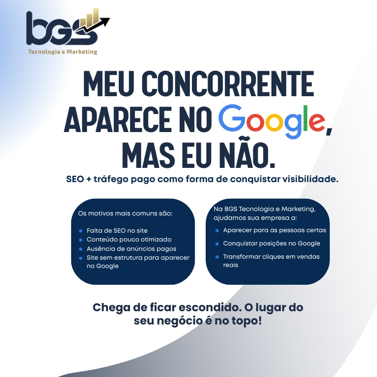 Se esse é o seu caso, não se preocupe — neste artigo vamos explicar por que isso acontece e como a BGS Tecnologia e Marketing pode ajudar sua empresa a aparecer no Google, atrair clientes qualificados e aumentar as vendas.